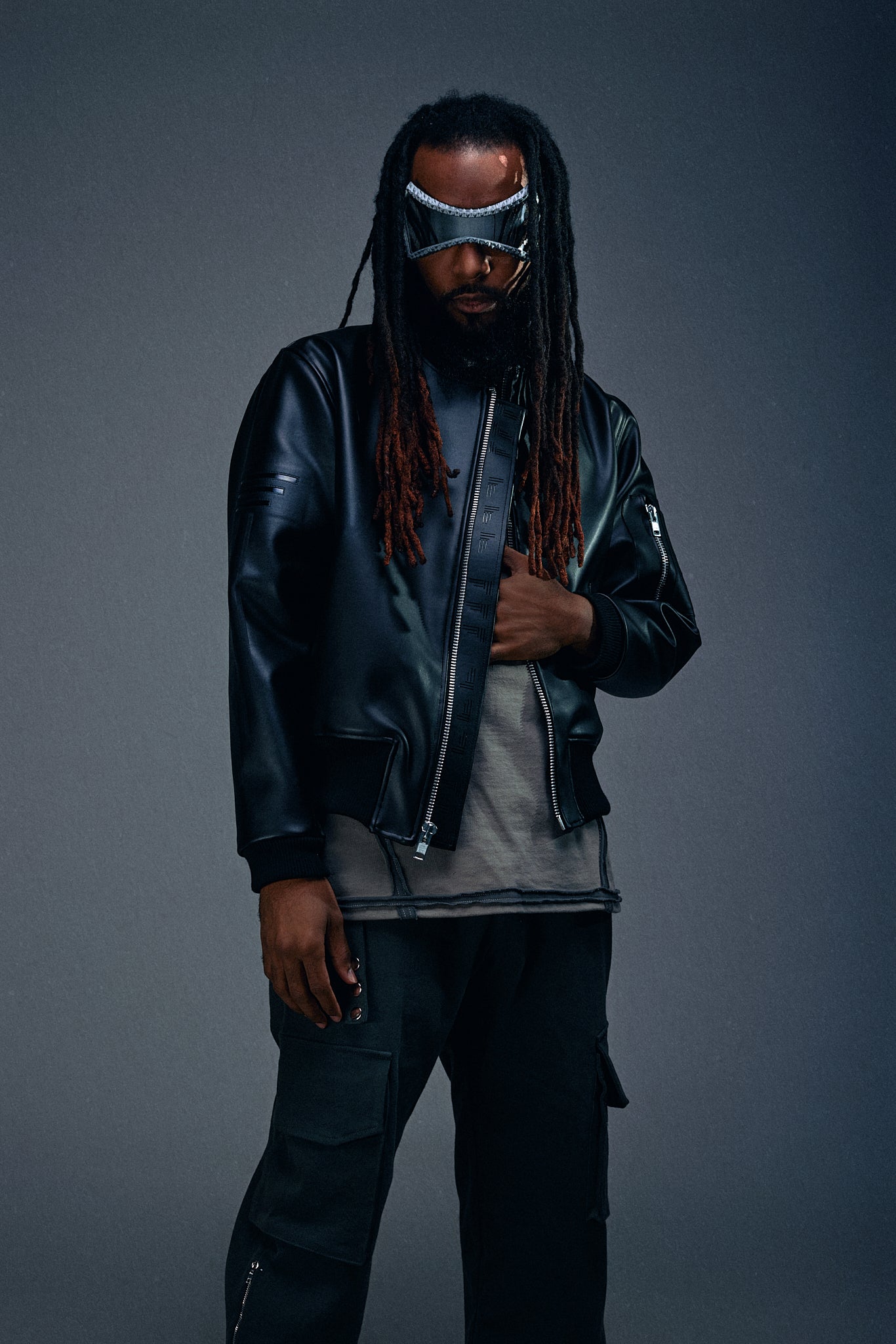 But it's the details that truly set the Glyph Bomber apart. Gleaming metal hardware adds a touch of street sophistication, while the laser-cut “glyphs” are backed by our exclusive Black Hologram fabric. This combination creates a mesmerizing play of light and shadow, ensuring that each jacket offers a truly one-of-a-kind look.